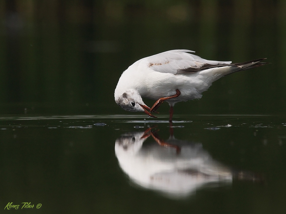A black-headed gull was busy adjusting its leg for quite a long time: