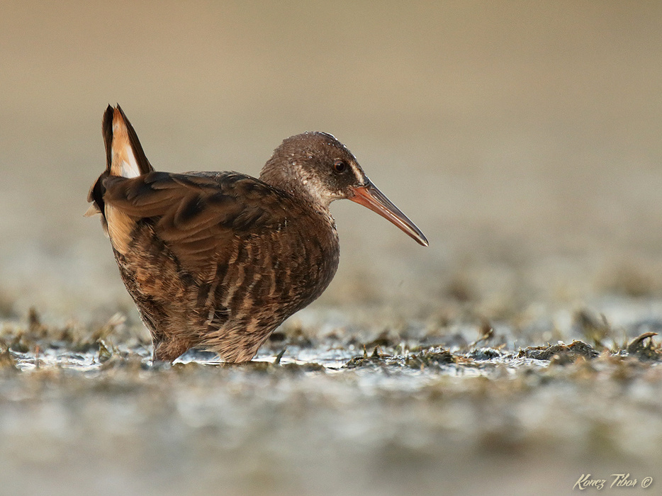 The sun hasn't rised yet when a common snipe appears in the drying pondbed searching for a good place: